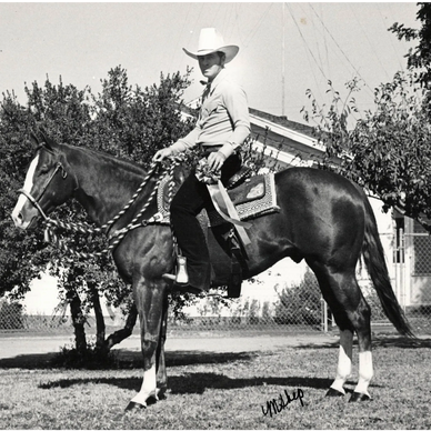 Pete came to us as a very athletic, promising two year old stallion. He excelled in just about everything he was asked to do. He won pleasure and halter classes, reining and cow horse classes. After the 1978 AQHA World Show I started breeding him and he was an excellent horse to collect on a dummy mare. He threw a lot of color so APHA mares had lovely colorful foals. He turned out to be a producer of excellent athletic foals with good attitude and dispositions.