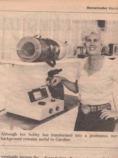 Caroline in March 1985 in the breeding barn at Strub Ranch.