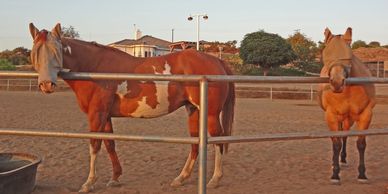 I boarded my horses with Caroline for about 5 weeks while I was in the process of moving from Anza, California to Texas. I loved her and her ranch from our first visit. She had been recommended by a friend who had done vacation boarding there. I was anxious to leave my horses and go so far away - but Caroline always kept me informed they were doing well and even sent pictures (see the two mares above in the golden light of an August evening)